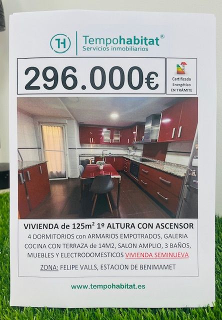 Tempohabitat presenta en exclusiva esta magnífica vivienda con ascensor en finca del año 2006, ubicada en la calle Felipe Valls, a pocos pasos de la estación de metro.